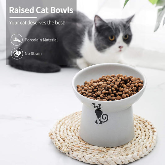 • Tilted Raised Cat Food and Water Bowl Set,Elevated Slanted Cat Feeder Bowls,Ceramic Pet Bowls,Protect Pet'S Spine,Backflow Prevention,2 Pack(White&Grey)